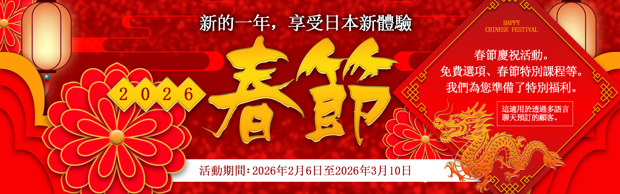 スパーク梅田 Spark Umeda (梅田・新大阪・十三・京橋/酒店服務) 特價優惠 春節特惠方案!100分鐘50,000日圓,贈送女孩親手遞上「紅包」&免費中式服裝角色扮演! 続きを見る *請透過多語言聊天發送訊息,說明您看到了「春節」。 聯絡該商店